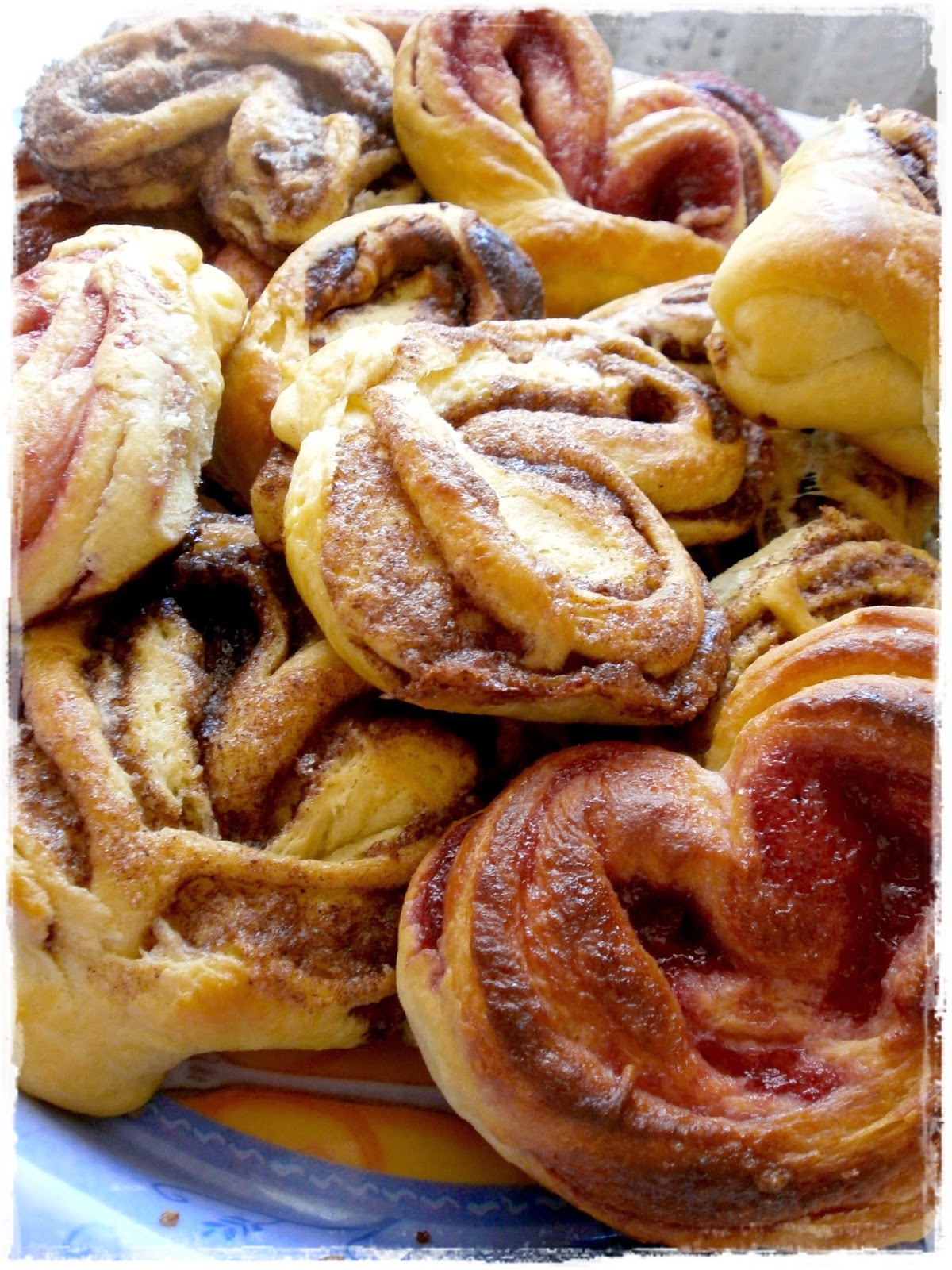 - na náplň: hustý džem (domáci ríbezľovo - malinový od maminky, čerstvo urobený z tohtoročnej úrody!), lieskooriešková nátierka (nutella a tak podobne), škoricový cukor